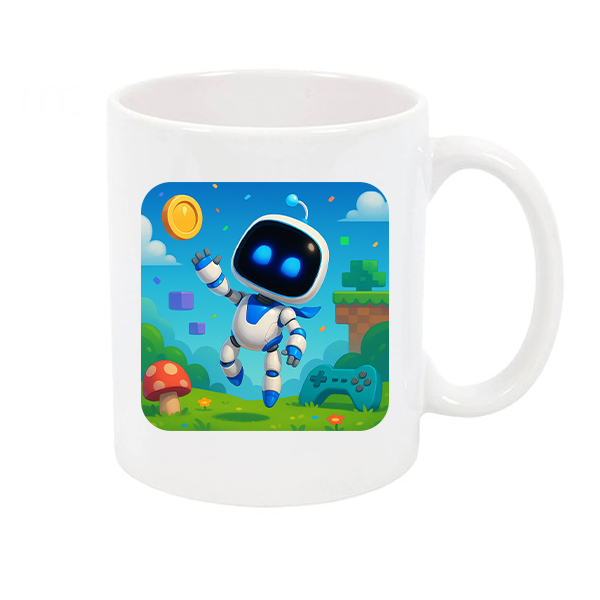 روی ماگ، سیارههای رنگارنگ، رباتهای بامزه، و خود Astro Bot وسط یه منظرهی فانتزی ایستاده بود. انگار هر جرعه از اون ماگ، یه سفر کوتاه به یه جهان موازی بود.